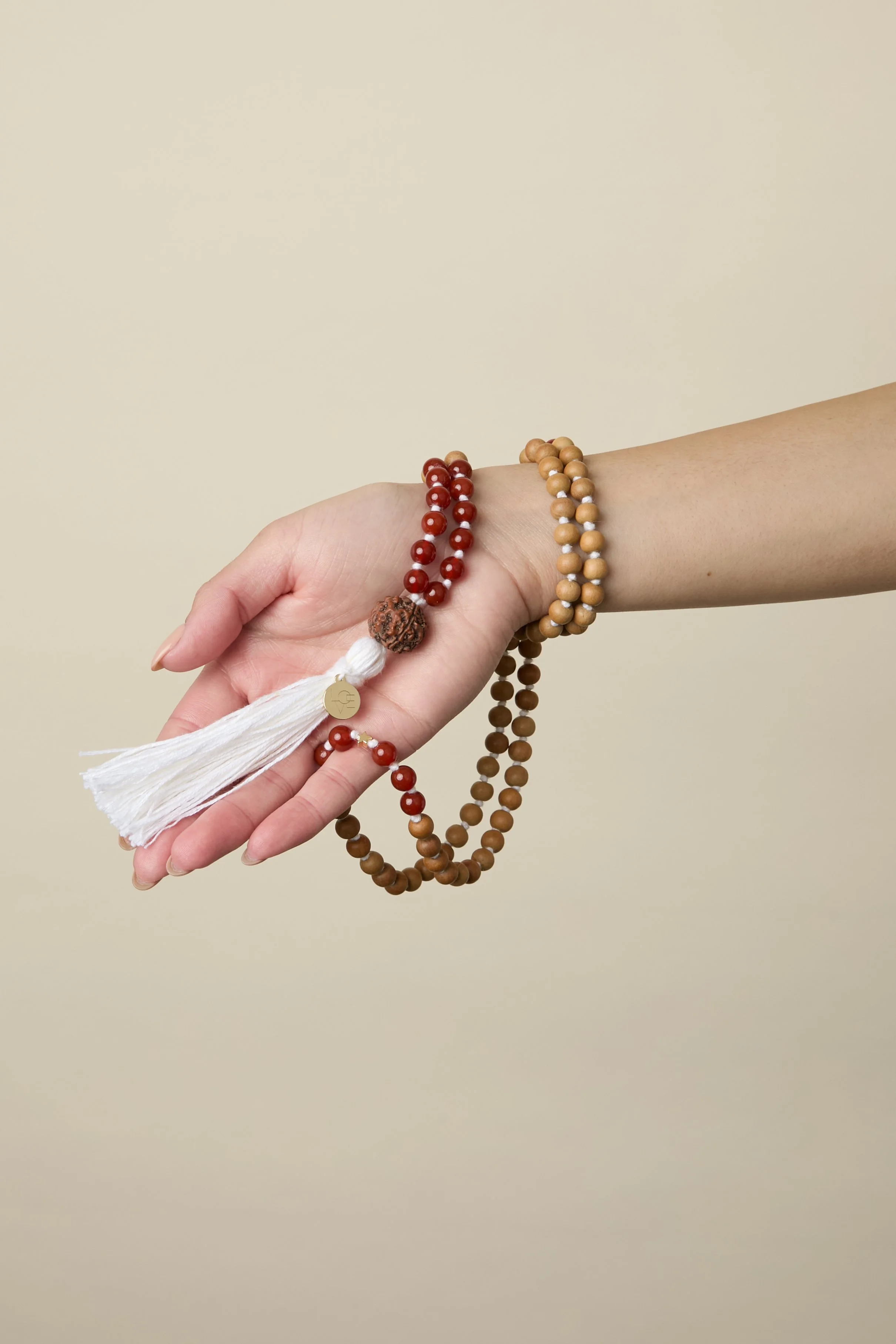 The natural and sustainably harvested sandalwood and rudraksha seeds come from India. This sandalwood is the most exquisite found. Each bead is hand carved and unique in its own way. We ensure the use authentic Sandalwood with exquisite scent.